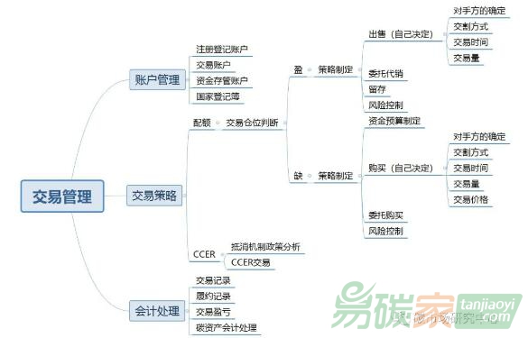 碳交易管理包括但不限于賬戶管理、交易策略制定、資金預(yù)算及管理、交易操作及結(jié)果報(bào)備、會計(jì)處理、風(fēng)險(xiǎn)控制等等,可能涉及到企業(yè)內(nèi)部生產(chǎn)運(yùn)行部門、預(yù)算部門、