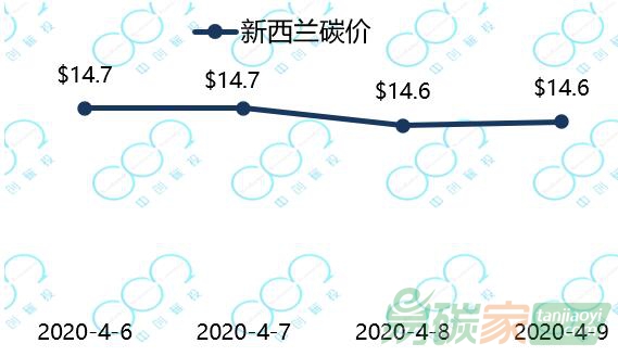 2020年4月6日至2020年4月10日,新西蘭碳價(jià)在14.6-14.7美元每噸之間小幅波動(dòng)。