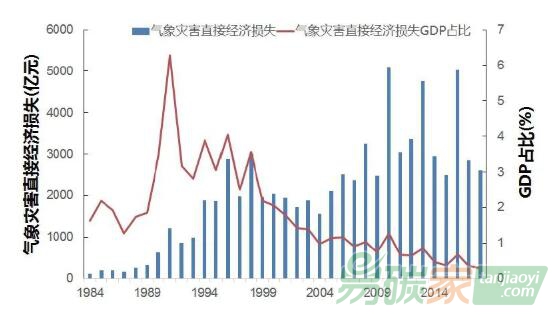 中國(guó)是一個(gè)受全球氣候變化影響嚴(yán)重的國(guó)家之一。根據(jù)國(guó)家氣候中心每年發(fā)布的災(zāi)害公報(bào)顯示,目前中國(guó)遭受的氣象災(zāi)害直接經(jīng)濟(jì)損失一直高居不下(如圖)。
