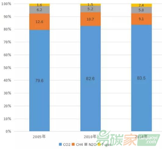 圖1 2005-2014年中國溫室氣體排放種類構(gòu)成