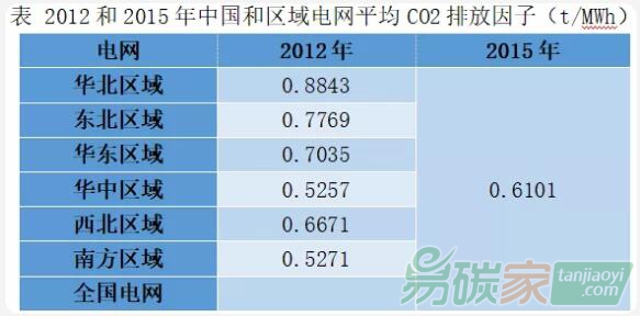 第一種情景,采用從電網(wǎng)購(gòu)入電量的常規(guī)方式,A企業(yè)將增加外購(gòu)電的間接碳排放,可以很明確排放因子的來(lái)源,選用區(qū)域或全國(guó)電網(wǎng)平均排放因子,也就是國(guó)家氣候中心公布的2012年區(qū)域電網(wǎng)、2015年全國(guó)電網(wǎng)的平均排放因子數(shù)據(jù),如下: