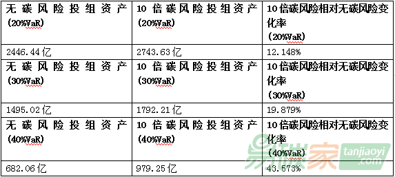 表4. 投資組合不同倍數(shù)碳價風(fēng)險分析