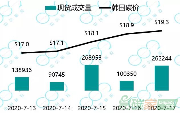 2020年7月13日至7月17日,韓國(guó)碳價(jià)小幅回升至19.3美元每噸。今年韓國(guó)碳市場(chǎng)履約延期一個(gè)月到7月底;此前環(huán)境部曾在5月份表示由于