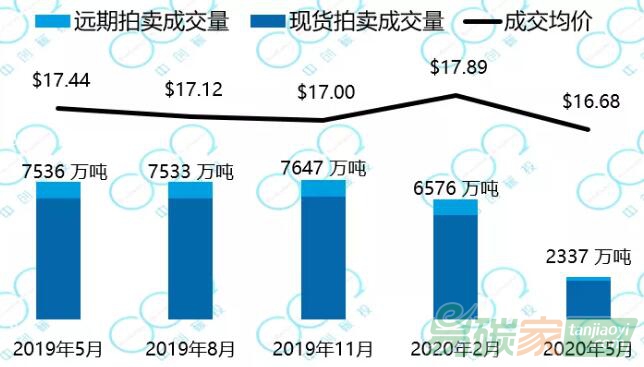加州-魁北克碳市場(chǎng)的初始配額發(fā)放以拍賣為主,每個(gè)季度舉行一次拍賣。2020年拍賣基價(jià)設(shè)定于16.68美元,比去年提高了7%。受疫情影響,美國(guó)大量企業(yè)停工,第二季度配額拍賣成交慘淡,拍賣成交量?jī)H為供應(yīng)量的35%。