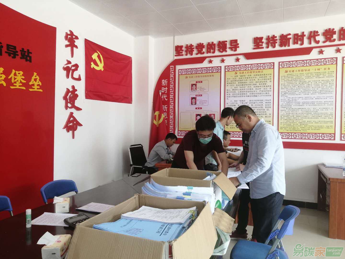 陳俊喜(前左) 聯(lián)合五條省定貧困村準(zhǔn)備申報(bào)材料。(來(lái)源:受訪者供圖)