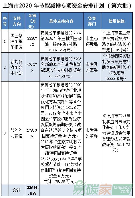 節(jié)能減排專項資金支持方向為國三柴油車提前報廢、新能源汽車充電補(bǔ)助、節(jié)能能力建設(shè)3項工作,計劃下達(dá)節(jié)能減排專項資金33614.825萬元(詳見附表)。