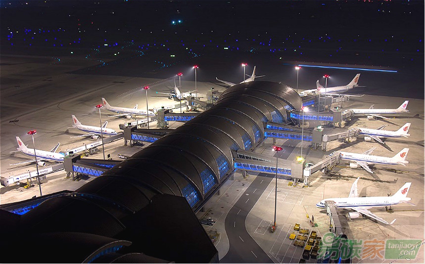 將部分區(qū)域照明燈具改造為LED燈具,完成更換后節(jié)約57%用電;對停機坪高桿燈采用合同能源管理形式,將高壓鈉燈替換為LED節(jié)能燈具,改造后節(jié)能率可達54%。