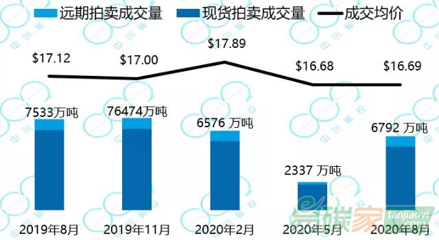 加州-魁北克碳市場(chǎng)的初始配額發(fā)放以拍賣為主,每個(gè)季度舉行一次拍賣。2020年拍賣基價(jià)設(shè)定于16.68美元,比去年提高了7%。受疫情影響,美國(guó)大量企業(yè)停工,第二季度配額拍賣成交慘淡,拍賣成交量?jī)H為供應(yīng)量的35%。第三季度拍賣恢復(fù)了活躍,90%的拍賣量得以成交,以16.69美元每噸的均價(jià)成交了6792萬(wàn)噸。