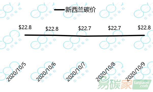 2020年10月5日至10月9日,新西蘭碳價(jià)穩(wěn)定在22.7-22.8美元每噸。