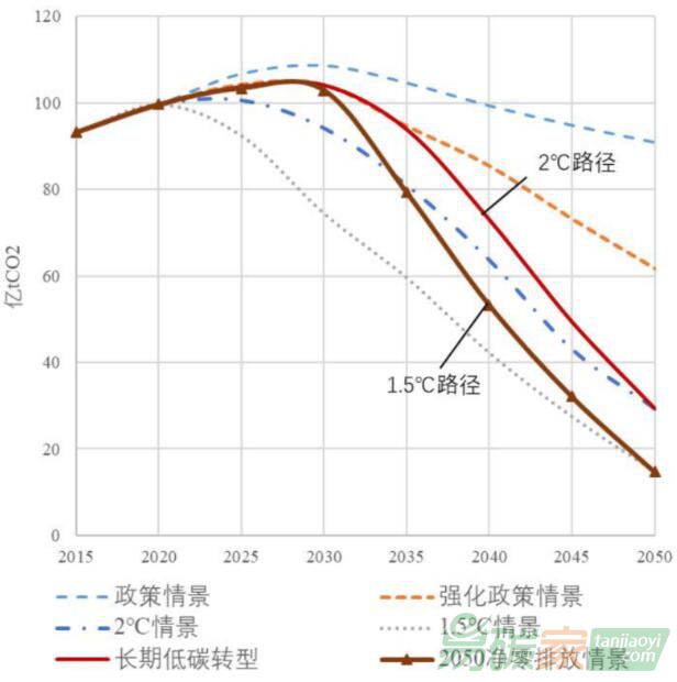 碳排放曲線:二氧化碳排放仍將上升并在2030年前達峰,能源消費在2035年左右達峰,然后在相對較短的時間內(nèi)使二氧化碳趨近凈零排放。
