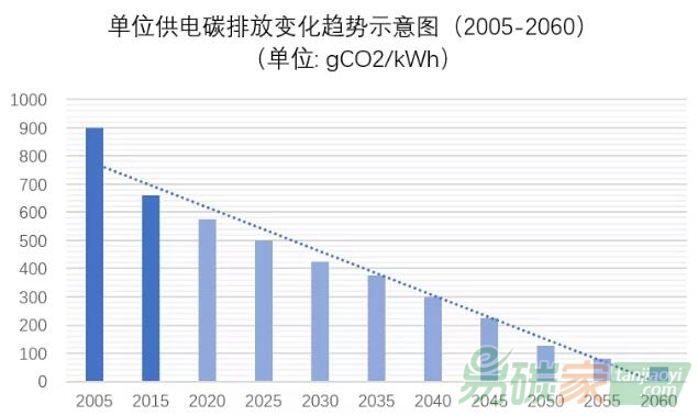 中國如果在2060年實(shí)現(xiàn)碳中和目標(biāo),電力行業(yè)單位供電碳排放要從目前的600克左右,至少以每10年平均100克左右(即每年10克左右)的速度往下降,才能確保2060年左右達(dá)到目前近零排放國家的水平(如瑞典、法國等)。