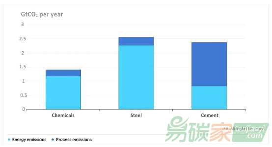 來(lái)源:IEA,https://www.iea.org/data-and-statistics/charts/direct-co2-emissions-from-selected-heavy-industry-sectors-2019