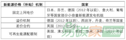 日本、芬蘭等國家實施固定上網(wǎng)電價機制,德國、意大利、葡萄牙等國通常只對容量較小的新能源發(fā)電機組實施。