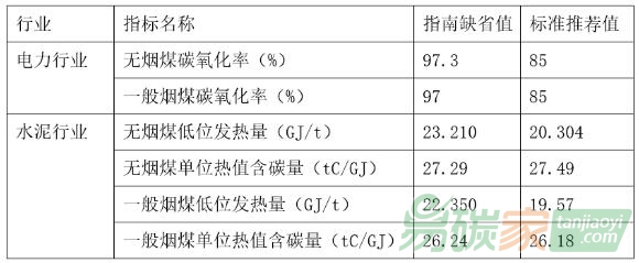 (2)標準對電力行業(yè)無煙煤和一般煙煤碳氧化率進行了調(diào)整,對電力和水泥行業(yè)無煙煤及一般煙煤的低位發(fā)熱量和單位熱值含碳量進行了統(tǒng)一,具體參數(shù)詳見下表: