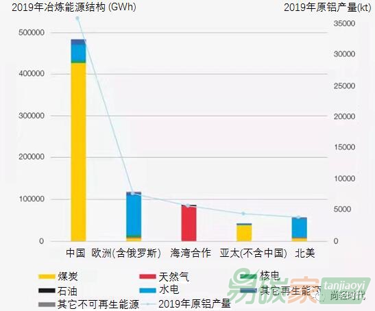 在中國,生產(chǎn)商高度依賴自備燃煤電廠,因此,中國原鋁生產(chǎn)是鋁行業(yè)溫室氣體排放的重要方面;2019年,原鋁生產(chǎn)過程中使用的燃煤發(fā)電約占行業(yè)碳足跡的58%。