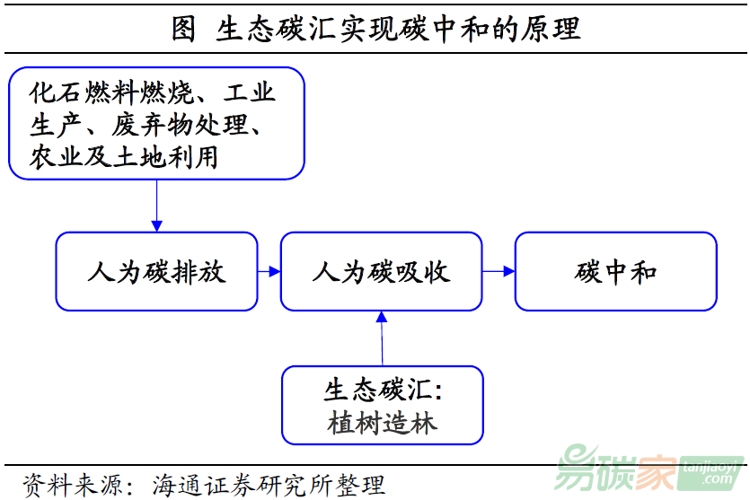 碳匯,助力碳中和。盡管從源頭直接降低碳排放是實現(xiàn)碳達峰的重要方式,但為了實現(xiàn)碳中和尚不能止步于此,還需要增加生態(tài)碳匯的強度。2010-2016年中國陸地生態(tài)系統(tǒng)年均吸收約11.1億噸碳,吸收了同時期人為碳排放的45%。不難發(fā)現(xiàn)生態(tài)碳匯對碳吸收起著舉足輕重的作用。