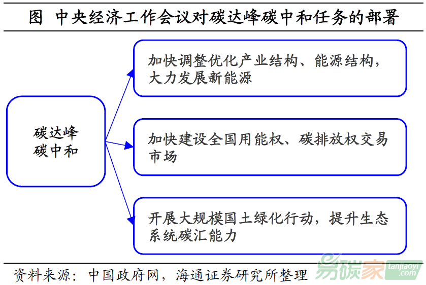 碳中和目標加快落實。在2020年9月的聯(lián)合國大會上,中國提出二氧化碳排放力爭2030年前達到峰值,力爭2060年前實現(xiàn)碳中和。而12月召開的中央經(jīng)濟工作會議不僅重申這一目標,還將其列為2021年的重點工作任務,并提出向調整能源結構、加快碳