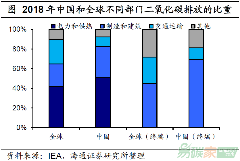 電力和供熱部門的占比達到51.4%,而將該部分的輸出分配到終端部門后,制造和建筑部門成為碳排放的主要源頭。
