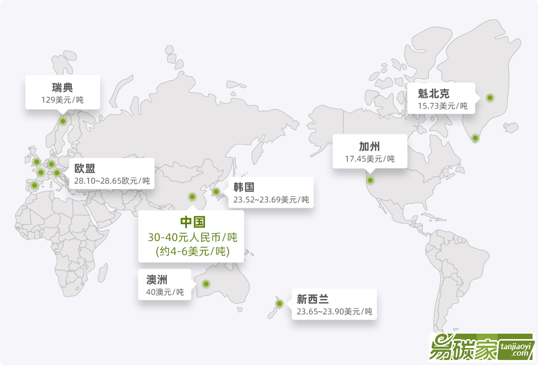 目前,全球率先實(shí)行碳交易機(jī)制的國(guó)家中,碳價(jià)格基本普遍保持在20美元以上,其中價(jià)格最高的北歐地區(qū)已經(jīng)接近130美元/噸。隨著由國(guó)家信用背書的中國(guó)核證