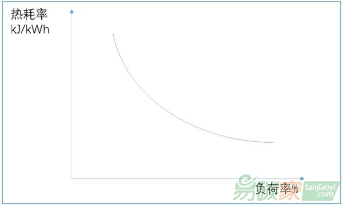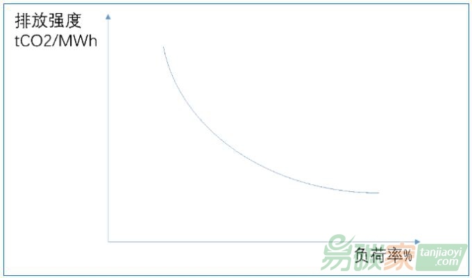 假設入爐煤低位發(fā)熱量、入爐煤含碳量和入爐煤燃燒氧化率不隨負荷變化,那么可以得到供電排放強度和負荷率的關(guān)系圖: