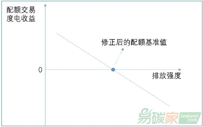 碳配額缺口。發(fā)電企業(yè)配額交易度電收益和排放強度的關(guān)系如下圖:
