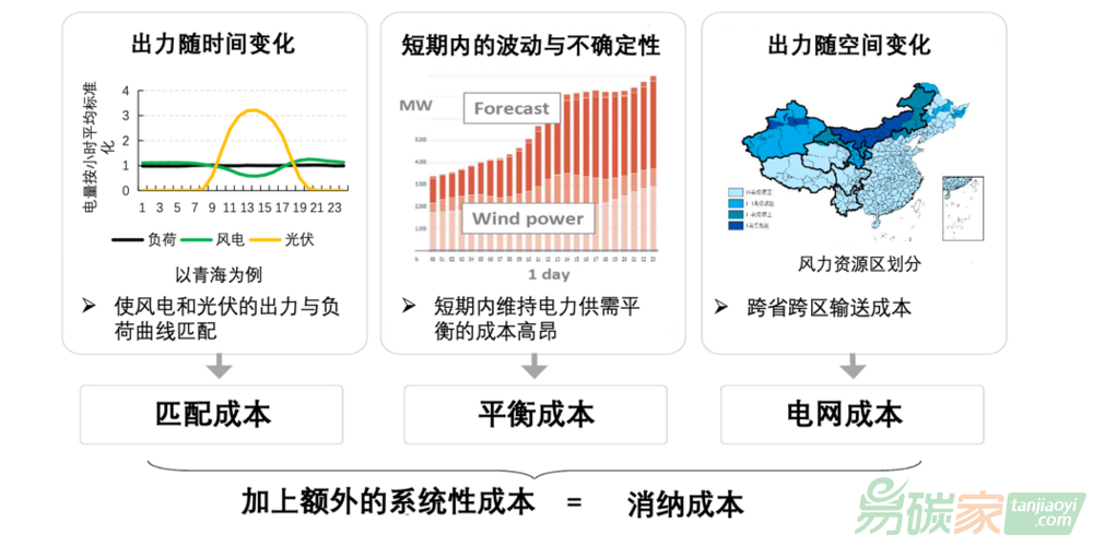 中國人民大學應用經(jīng)濟學院副教授宋楓總結,新能源的出力特性和負荷特性匹配度不高、自身的波動性,以及中國新能源資源稟賦和需求的空間差異,導致新能源在消納時還要考慮匹配成本、平衡成本和電網(wǎng)建設成本,這些成本加上額外的系統(tǒng)性成本,構成了新能源的消納成本。