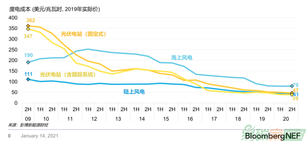 全球風電、光伏基準度電成本