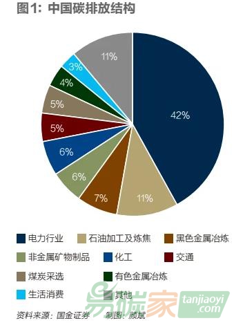據(jù)國(guó)金證券統(tǒng)計(jì),目前中國(guó)碳排放結(jié)構(gòu)以