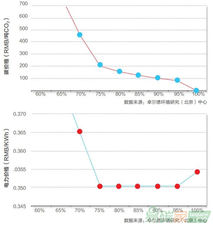 碳市場(chǎng)將無法實(shí)現(xiàn)平衡。因此,碳市場(chǎng)價(jià)格在某些區(qū)間之外,可能會(huì)快速上漲,對(duì)減排成本高度敏感?!睆垬鋫フf。
