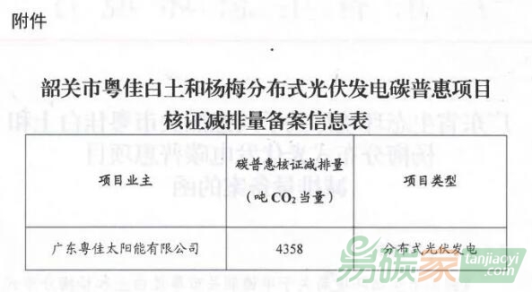 《韶關(guān)市生態(tài)環(huán)境局關(guān)于申請韶關(guān)市粵佳白土和楊梅分布式光伏發(fā)電碳普惠項目減排量省級PHCER核證備案的請示》收悉。經(jīng)審核,韶關(guān)市粵佳白土和楊梅分布式光伏發(fā)電碳普惠項目符合廣東省安裝分布式光伏發(fā)電系統(tǒng)碳普惠