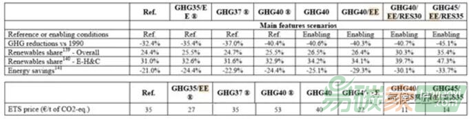 表1 歐盟2030年能源政策組合對碳市場配額價格的影響