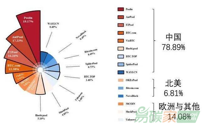 如下圖所示,根據(jù)4月6日《自然·通訊》中一篇論文的報(bào)道,目前中國的礦場占據(jù)了世界比特幣超過75%的算力。如果沒有