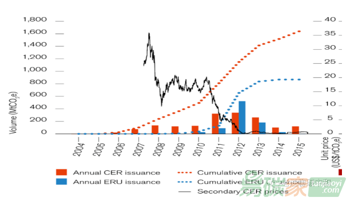 因哥本哈根會(huì)議結(jié)果的不理想及歐盟第三階段對(duì)CER使用的限定,CER價(jià)格在2010年中旬便開始了瀑布式下跌,價(jià)格從之前的20美元一噸跌倒不到2012年的不到1美元一噸,跌去了90%,基本等于歸零。