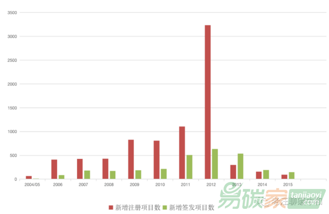 碳市場規(guī)定2013以后的項(xiàng)目只接受最不發(fā)達(dá)國家的CDM項(xiàng)目用于履約。期望2012年以后還能在歐盟碳市場賺一筆的開發(fā)商則盡可能地把正在開發(fā)的項(xiàng)目搶在2012年底之前注冊,于是,巨量的項(xiàng)目涌入CDM申報(bào)通道,成為CDM暗淡下去的最后閃光。