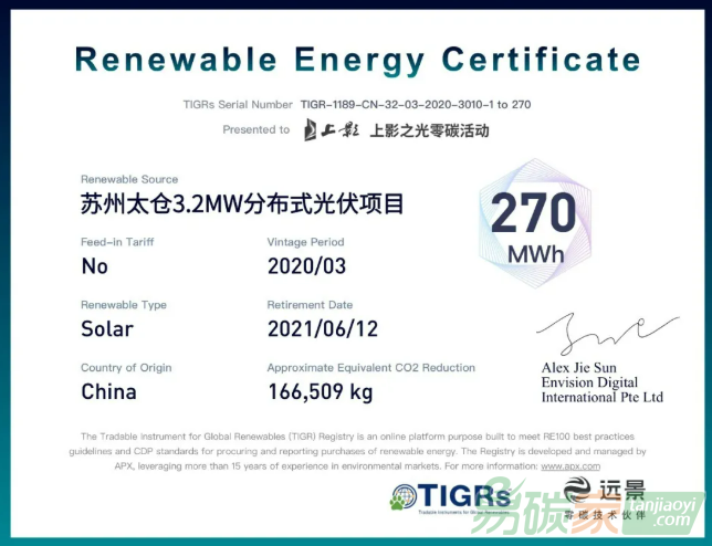通過(guò)方舟碳管理系統(tǒng),上影集團(tuán)一鍵采購(gòu)了位于蘇州太倉(cāng)分布式光伏項(xiàng)目所產(chǎn)生的270張平價(jià)綠證,實(shí)現(xiàn)本屆電影節(jié)活動(dòng)期間的碳中和閉環(huán)。