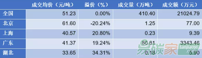 表 1 全國(guó)碳市場(chǎng)首日成交情況與部分試點(diǎn)碳市場(chǎng)對(duì)比