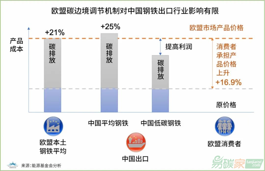 碳排放較低的鋼鐵可以按照實(shí)際碳排放征收碳邊境調(diào)節(jié)稅,從而增加低碳鋼鐵的競爭力。