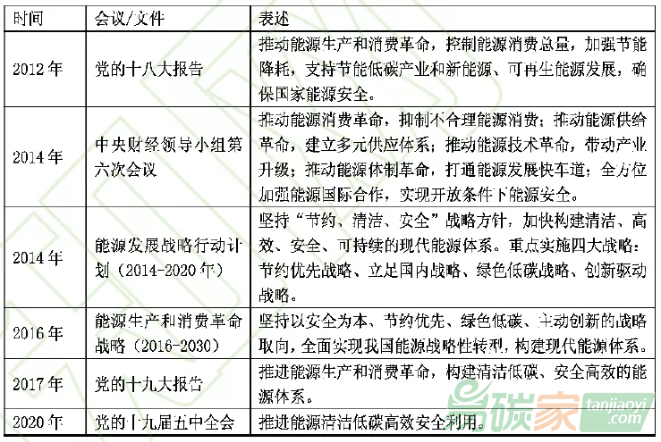 表1 重大會議/文件對能源戰(zhàn)略的表述圖片