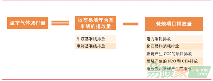 焚燒發(fā)電項目基準線排放包括替代垃圾填埋產(chǎn)生的CH4排放以及替代火力發(fā)電相同電量產(chǎn)生的排放,共2個要素。