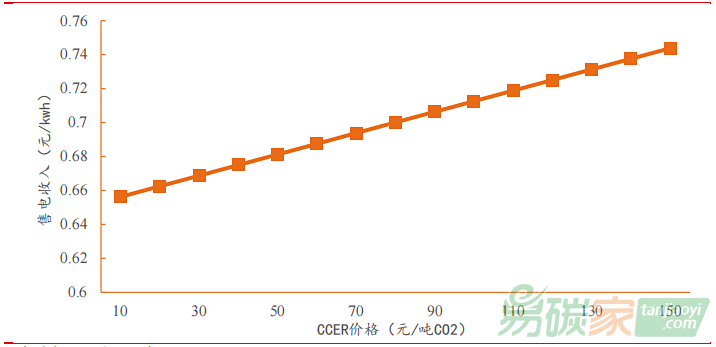 計算得到,CCER交易價格為80元/噸CO2時,售電收入可增加0.05元/kwh,收入增厚可達7.7%。