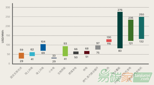 圖1 2020年中國不同發(fā)電來源的平準(zhǔn)化度電成本