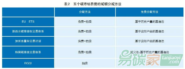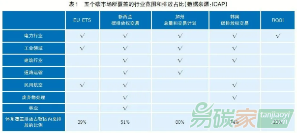 因政策的定位不同,不同碳市場之間的設(shè)計和實(shí)施實(shí)踐也就呈現(xiàn)多元化。五個碳