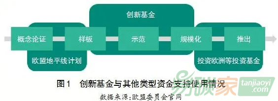 為實(shí)現(xiàn)第四階段碳減排目標(biāo),歐盟碳市場(chǎng)推出了創(chuàng)新基金,主要來(lái)源于2020~2030年配額拍賣(mài)收入及歐盟NER300項(xiàng)目未使用的資金,為創(chuàng)新低碳技術(shù)商業(yè)化試點(diǎn)提供資金支持,支持項(xiàng)目主要有能源密集行業(yè)創(chuàng)新低碳技術(shù)和工藝,包括碳密集產(chǎn)品的替代品;碳捕捉及利用;碳捕集及存儲(chǔ)的建設(shè)與運(yùn)營(yíng);創(chuàng)新的可再生能源發(fā)電;儲(chǔ)能等。創(chuàng)新基金是歐盟達(dá)成《巴黎協(xié)定》及2050年實(shí)現(xiàn)碳中和的關(guān)鍵資金工具。創(chuàng)新基金覆蓋大型項(xiàng)目60%的資本成本和運(yùn)營(yíng)成本,覆蓋小型項(xiàng)目60%的資本成本,主要側(cè)重項(xiàng)目試點(diǎn)示范,資助金額的40%在項(xiàng)目準(zhǔn)備階段支付,并可以與其他類(lèi)型資金支持一塊使用,如“歐盟地平線計(jì)劃2020”及歐洲地平線等,實(shí)現(xiàn)項(xiàng)目全生命周期覆蓋(見(jiàn)圖1)。