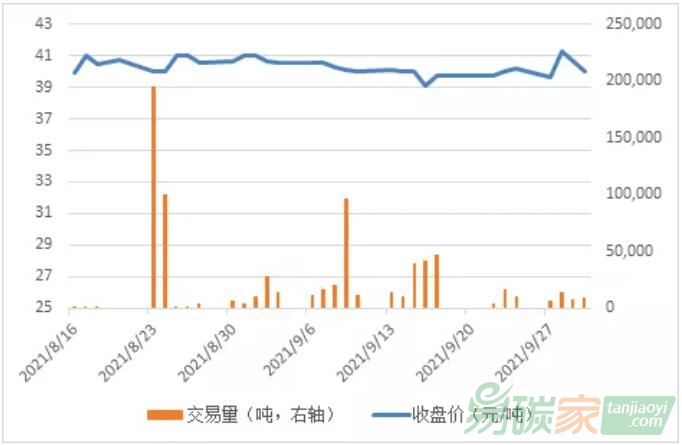 碳配額(SHEA)現(xiàn)貨市場線上成交31,305噸,較上周稍有擴(kuò)張,協(xié)議轉(zhuǎn)讓無成交。成交方面,本周SHEA每日均有交易達(dá)成,日均成交9,500余噸,其中周二交易量最大,達(dá)14,247噸。價格方面,SHEA繼續(xù)在40元/噸價格水平窄幅波動,周二升至41.28元/噸,隨后稍有下滑,9月30日報收40.00元/噸,較上周五9月24日下跌0.20元/噸。