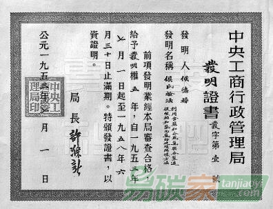 “新中國(guó)第一號(hào)發(fā)明證書(shū)”永利化工第一專利證書(shū)  資料照片