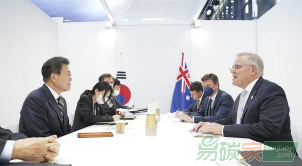 韓國總統(tǒng)文在寅31日在羅馬出席二十國集團(G20)峰會期間同澳大利亞總理莫里森舉行會談。雙方簽署《韓澳
