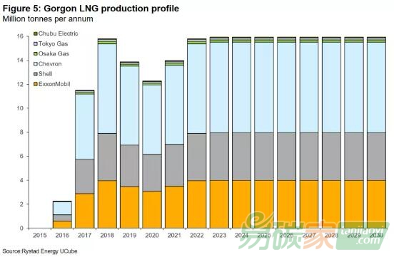 Gorgon項(xiàng)目LNG產(chǎn)量(百萬噸/年)[6]
