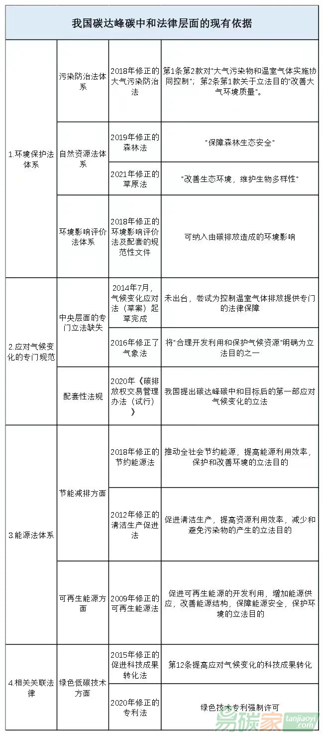 我國(guó)碳達(dá)峰碳中和現(xiàn)有的法律框架