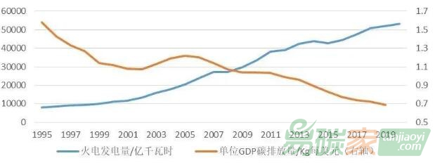 我國火電發(fā)電量及單位GDP碳排放