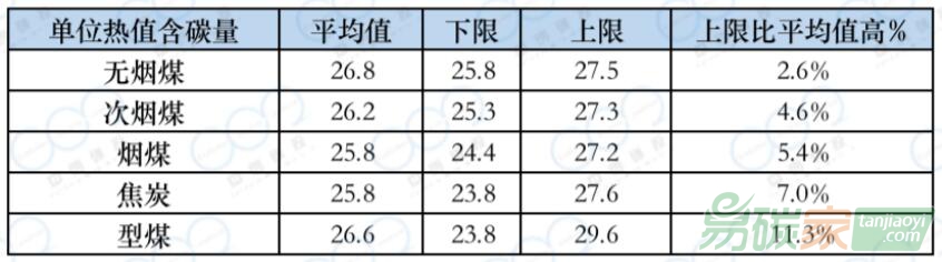 表|IPCC指南中常見(jiàn)煤種單位熱值含碳量平均值和95%置信區(qū)間上下限值 (單位: tC/TJ)